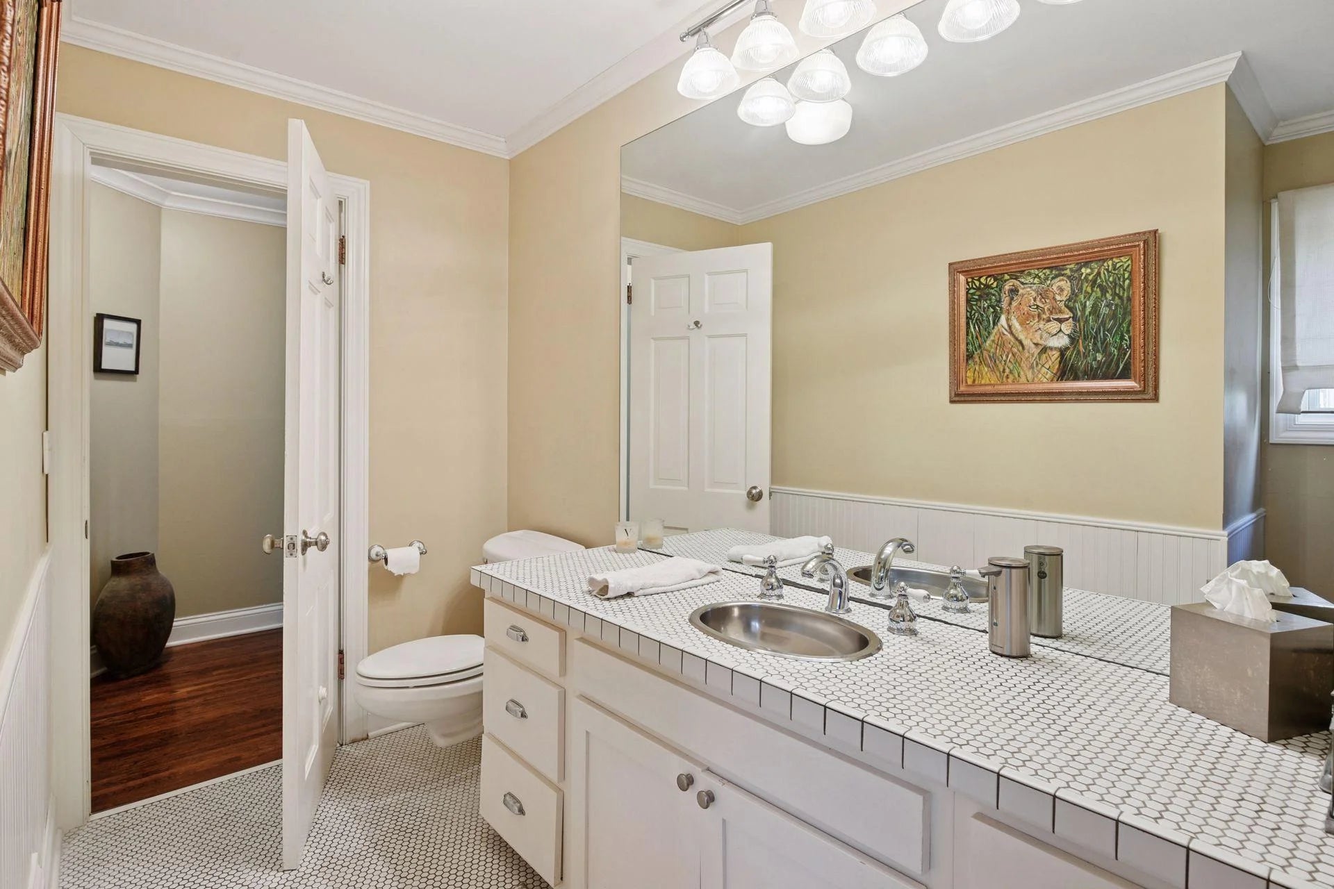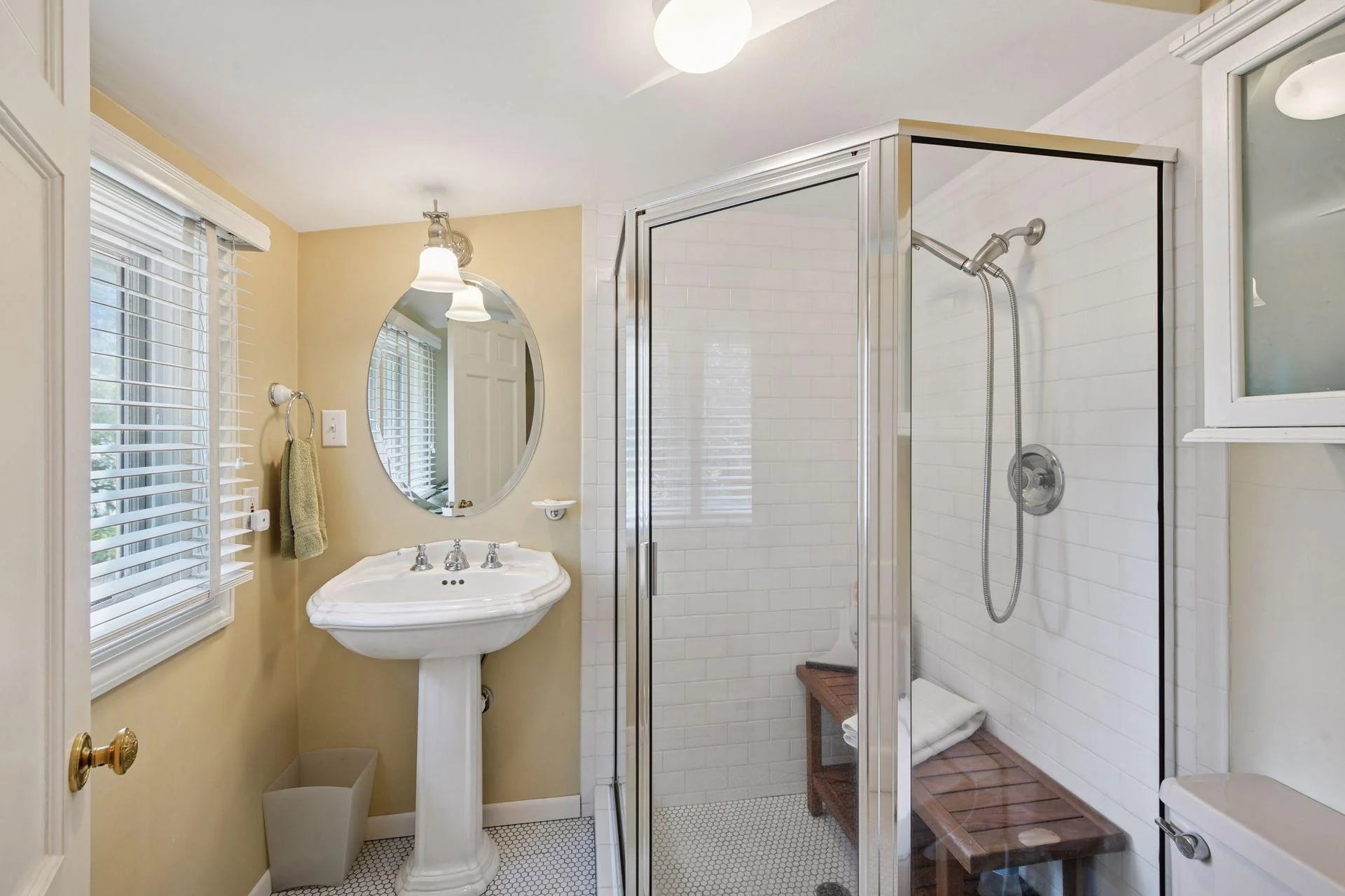Enjoy the home as-is, with its charming lake cabin feel, or envision and build your dream estate to fully capitalize on this one-of-a-kind setting. The existing home offers a flexible and inviting floor plan, with a main-level bedroom and full bath, open-concept living and family rooms featuring rich wood floors, beamed ceilings, and a cozy stone woodburning fireplace — all designed to frame and celebrate the sweeping lake views. Upstairs, the primary suite provides a private retreat complete with a full ensuite bath, along with two additional bedrooms an additional ¾ bath and a convenient laundry room.